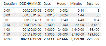 Therefore, in order to display a duration longer than one day, we have to write some DAX code.