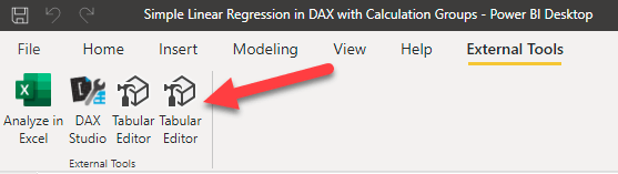 As a first step I ran Tabular Editor from the External Tools ribbon in Power BI (I have two versions installed)