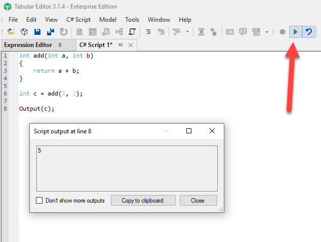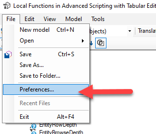 But starting from C# version 7.0 it’s possible to declare local functions, and both Tabular Editor versions, the free and the commercial ones, allow to specify the C# compiler to be used and the language version.